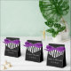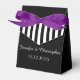 Was für eine wundervolle, personalisierte Gastgeschenk Box für eine Hochzeit, ein Jubiläum oder einen anderen besondere Anlass. Diese Fevor Box ist mit einem eleganten Muster aus schwarz-weißen Streifen auf schwarzem Hintergrund dekoriert. Auf der Vorderseite, Namen und Ereignisdatum in weiß. Ein lila Band rundet das festliche Aussehen ab. Eine moderne, elegante und schicke Gastgeschenk Hochzeit Box. Alle Rechte vorbehalten © 2015 Alan & Marcia Socolik.