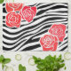 Schwarzweißzebramuster + rote Rosen Geschirrtuch