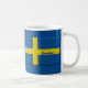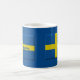 Flagge von Schweden in den schwedischen Farben von Blauem und von Gelbem, macht ein großes Geschenk für Ihre skandinavischen Freunde und Familie, besonders für Weihnachten. Geburtstage oder Jahrestage. Personifizieren Sie diese Tasse mit Ihrer Wahl von Namen auf beiden Seiten.