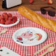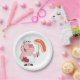 Ein lustiger Cartoon Schweinchen kocht Fleisch. Das Schwein hält ein paar große Fleischstücke auf. Dieses Design wirkt auf diese Paper-Teller sehr effektiv