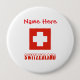 Personalisiertes Button-Button zeigt die Schweizer Flagge mit rot, schneebedeckten Buchstaben, die SCHWEIZ lesen. Fügen Sie oben einen Namen hinzu, auch in roten Buchstaben, um ein besonderes Geschenk für jemanden oder sich selbst zu machen. Großes kleine Geschenk. Auch viel Spaß auf einer Wiedersehen.