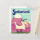 Schweiz Vintages Reiseplakat einer niedlichen Cartoon Ziege auf den Alpen.