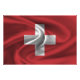 Foto mit Schweizer Fahne im gewölbten Stoffdesign. Dieses Design besticht durch die Schweizer Fahnenfarben und das Design mit einem schönen, schwingenden Materialeffekt. Dieses Flaggendesign ist eine großartige Möglichkeit, Ihnen zu zeigen, dass Sie stolz sind, aus der Schweiz zu kommen.