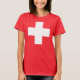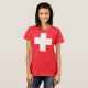 Diese grafischen T-Shirts und andere Objekte zeigen ein Motiv des weißen Kreuzes der Schweizer Flagge auf rotem Hintergrund.
