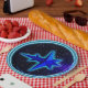 Ein einfaches, blau-farbenes 3D-Fraktal, das einem stilisierten Raumschiff ähnelt, das auf einem sternenförmigen Hintergrund überlagert ist. Konzentrische Ringe (Schwerkraft-Wellen?) gehen vom Raumschiff in das scheinbar leere Vakuum des Raumes aus. Eine hellblaue Aura umgibt die Raumsonde, vielleicht das Ergebnis schneller als die Lichtreise. Fügen Sie Ihren eigenen Text hinzu.