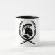 Silhouette eines spartanischen Helms und Schultern mit zwei gekreuzten Schwertern und einem Kranz umgebenden Helm.