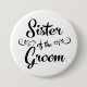 Schwester des Arttypographiehochzeits-Proben-Abendessenknopfes des Bräutigams Vintagen. Die Hintergrundfarbe ist kundengerecht - Sie können sie Ihr Hochzeitsthema zusammenbringen lassen.