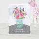 Wünschen Sie Ihren Schwester- und Schwagersegen auf ihrem Jahrestag. Dieser hübsche Maurerglasvase hält einen Mischblumenstrauß von Aquarellblick Blumen auf einer gestreiften Tabelle. Hübsche religiöse Karte, zum des glücklichen Jahrestages zu sagen.