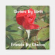 Produkt zeigt ein Foto von einer rote Rose Bud und erklärt, dass wir Schwestern von Geburt, aber Freunde von Wahl.