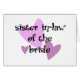 Feiern Sie Liebe und Ehe, indem Sie Ihre Schwesternschwester mit unserer Schwesterschwester des Brautschwesters, T - Shirt, Geschenk oder Sake als Gastgeschenk Hochzeit auf Ihrem Hochzeitstag, Brautparty oder Junggesellenabend überraschen.