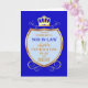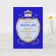 Wünschen Sie Ihrem Schwiegersohn einen glücklichen Tag mit einem königlichen Schild. Eine goldene Krone sitzt über einem Schild mit goldenem Scroll. Sagen Sie Ihrem Schwiegersohn, dass er der Beste ist in einer traditionellen mittelalterlichen Art!