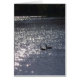 Zwei Gänse, die in Richtung zum Sonnenlicht funkelt vor dem See schwimmen