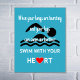 Deine Beine sind schwer, deine Lungen platzen, aber das Rennen ist noch nicht vorbei. Finden Sie diese Extra-Unze Entschlossenheit und schwimmen Sie von Herzen. Dieses motivierend Poster hat eine weiße Schrift auf einem wasserblauen Hintergrund mit der Silhouette eines Schwimmers. Um eine andere Hintergrundfarbe auszuwählen, klicken Sie einfach auf die Schaltfläche Anpassen.