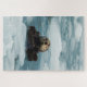 Dekoriert mit einem Bild eines Meeresotters (Enhydra lutris), der auf seinem Rücken schwebt, umgeben von Eisbergen im Alaska-Prinz William Sound. von Ted Raynor