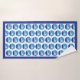Das Schwimmer-Symbol auf einem blauen Set mit Badehandtuchhalle zeigt das Muster einer minimalistisch weißen Ikone eines Schwimmers auf einem zweifarbigen blauen Kreis-Meer und Himmel und um ihn herum eine blaue Grenze. Das Waschlappen ist weiß mit dem Monogramm, während das Handtuch ein zweifarbiges blau gestreiftes Muster aufweist.