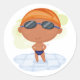 Schwimmer Junge in Glöckchen und Schwimmenkap Runder Aufkleber