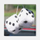 Ein Foto schwarz-weiß schwammiger Würfel, die von einem Rückspiegel hängen. Ein tolles Geschenk für einen Autoenthusiasten.
