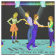 Schwingen Sie Tanzen-Paare mit Scheinwerfern und einen Tanzboden mit Musiksymbolen 9" Quadrat. Gewebe. Dieses ist sortierte zu den 9-Zoll-Quadraten. Es gibt andere Versionen dieses Entwurfs mit Klein Gedrucktem.