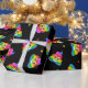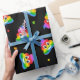 Niedliche Liebe in Regenbogenfarbe poo emoji mit Regenbogenherzen auf schwarzem Hintergrund Valentinstag Packpapier / Geschenkpackung für schwule lesbische / homosexuelle Paare.