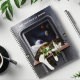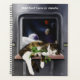 Un mignon chat tabby dormant sous une fenêtre de vaisseau spatial sur son chat mal avec son jouet en peluche mignon alien vert