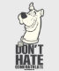 Karo diese Scooby-Doo Grafik im Retro-Stil heraus, in der Scooby-Doo über die Worte "Don't Hate, Congratulate" winken.