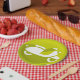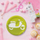 Ein Motorrad-Roller-Symbol auf einem grünen Hintergrund. Dieses Design sieht wirklich effektiv aus bei diesen Paper-Tellern