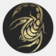 Ein zodiaktisches Design für Scorpio mit einem goldenen Skorpion auf schwarzem Hintergrund. Der Skorpion wird im Tattootyp gezeichnet. Die Originalgrafik ist mit freundlicher Genehmigung von Graphics Factory, aber die Grafik wurde digital manipuliert, um diesen goldenen Stil zu schaffen. sgb01