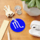 Scorpio Symbol in Weiß auf blauem Hintergrund.