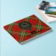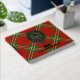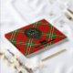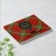 Clan Scott Wappen Abzeichen umgeben von einem Gurt und Schnallen über rot kartan Hintergrund. Benutzerdefinierter Vorder-, Rücken- und Rückentext.