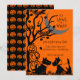 Niedliche Einladung in Schwarz, Orange und Weiß. Schottische Terrier versagten unter Vollmond zum Feiern von Halloween. Es gibt einen Vintagen Blick auf diese soziale Illustration.