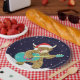 Scottish Highland Cows spielt eine Weihnachtsgitar Pappteller