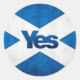 Runder Aufkleber mit einer texturierten schottischen Flagge und dem Wort "ja" - zeigen Sie Ihre Unterstützung für ein Ja im Referendum über die schottische Unabhängigkeit!