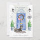 Annoncez votre nouvelle adresse avec notre faire-part élégante avec un Terrier écossais, porte d'entrée bleue, tapis de bienvenue, ardoise, topiaires et une couronne fleurie posée sur un arrière - plan en brique grise.