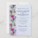 Elegante schottische Hochzeitseinladungen mit einem schönen Blumenmotiv. Die magenta Thistle, offizielle Blume Schottlands, mit Gänseblümchen, vergessenen Nüssen, blauen Seehöhlen und anderen Blumen. Schmetterling und Libelle schweben an der Grenze. Weiche Imitate texturieren Hintergrund auf Vorder- und Rückseite in hellblau mit Magenta Akzent auf Grenze. Weitere passende Artikel gibt es in diesem schönen schottischen Hochzeitsthema.