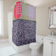 This shower curtain has a mid-century modern abstract design with three different backgrounds, zigzag lines, ovals, and circles, in navy, light blue, red, khaki, and lavender. If you want the same design with different colors, message me.