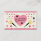Eine Visitenkarte für die Schrottbuchung, die mit einer Schere, einem Stern und einer Blume, einem großen rosa Herz im Hintergrund, kleinen Herzstücken, die rund und in rosa abgerundeten Rändern verteilt sind. Ideal für Kartenspieler, Scrapbooking, Kunsthandwerk, Kinderaktivitäten, etc.