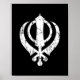 Scratched White Sikh Khanda Symbol auf schwarz Poster