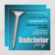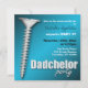 Cooles, blaues Quadrat #dadchelor Einladungen mit einer großen grauen Schraube. "Join us uns für ein paar männliche Spaß, wie (Vater zu sein) erwartet Baby #1".