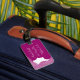 Stilvolle Gepäckmarke für eine schöne Frau. Vollständig anpassbar! Ändern Sie den Hintergrund, den Schriftart oder fügen Sie den zusätzlichen Text auf der Rückseite durch Klicken auf die Schaltfläche Anpassen.