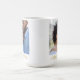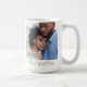 The Script Across Us mug features a centered full-width photo with a flowing cursive phrase My Everything overlaying the bottom. A delicate gold line with a heart accent adds warmth. The clean white base and modern layout create a sleek design that feels deeply heartfelt.