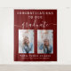 Feiern Sie den Erfolg Ihres Absolventen und werfen Sie ein einfaches Party mit diesem minimalistischen Skript Kalligraphie zwei Foto Abschluss Tapestry Hintergrund in Maron Hintergrund, die Sie hängen oder an Ihrer Wand.