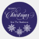 Script Christmas Custom Blue Sticker. Minimaler, einfacher und moderner blauer Aufkleber mit einem Wirblen Schriftart, individuellem Text und Schneeflocken. Stick dies auf Ihrer Weihnachtskorrespondenz, Geschenke oder andere. Der Wirble Script-Schriftart macht es elegant und klassisch, während die drei einfachen Schneeflocken eine moderne und minimalistische Drehung bilden.