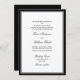 Faire-part de mariage classique avec parents mariés et mariés nommés en introduction comme hôtes. Écriture classique et texte gris foncé clair dans une bordure noire et grise. Un dos noir. Pour ajuster la disposition, cliquez sur Personnaliser, sur Modifier le texte, puis sur et faites glisser les sections de texte vers les emplacements souhaités. Utilisez Cntrl pour sélectionner et déplacer plusieurs sections à la fois.