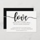 Script simple et élégant | Les invitations de mariage modernes sont parfaites pour les couples qui veulent un design simple mais élégant d'invitation de mariage. Caractéristiques "LOVE" en script noir. Étincelle & Parties scintillant © Le design présente les noms des mariés et des mariés dans une police de caractères élégante. Affiché en noir et blanc mais peut être customisé à vos couleurs mariages pour le texte et l'arrière - plan. Ajoutez d'autres graphiques, photos ou monogrammes pour personnaliser ce modèle.