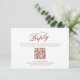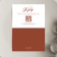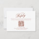 Faites vos invitations de mariage inoubliables avec cette carte RSVP de mariage élégante dans un design bordeaux minimaliste. Doté d'un script de calligraphie classique et d'une typographie traditionnelle, il capture l'élégance et la sophistication traditionnelles. Le modèle de code QR offre un moyen pratique pour les invités à RSVP, tandis que le texte de la réponse gentille ajoute une touche attentive. Cette carte de réponse élégante complète un design formel et élégant et s'aligne parfaitement avec votre gamme de papeterie correspondante pour un look cohésif et poli.