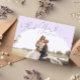 Elégant et minimaliste mariage merci carte photo avec un grand cadre en arc lilas avec une police de script qui dit "merci" en haut. Vous pouvez ajouter une deuxième image au dos avec un message.