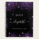Arrière - plan noir, texte blanc. Décoré avec de la poussière de parties scintillant en faux violet. Personnalisez et ajoutez une année, votre prénom et un titre. Le nom est écrit avec un script de style moderne écrit à la main avec des swashes. Pour que les swashes ne suppriment que le nom de l'échantillon, laissez les espaces ou émoticônes devant et après le nom.