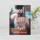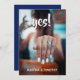 Faire-part fiançailles photo de typographie branché. Moderne et élégant, ce design personnalisé comprend le texte "yes!" en écriture de script décontracté et un champ de texte modifiable pour les noms du couple dans élégant sans serif. Les cartes retournent à un champ de texte modifiable pour un message et un gribouillage cardiaque sur un arrière - plan bleu marine. Personnalisez facilement cette conception pour correspondre à votre style en cliquant sur "Personnaliser" pour aller à l'outil de conception et ajouter votre propre texte ou détails personnalisés.