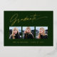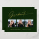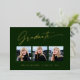 Trois cartes photo, étonnantes, modernes et élégantes de graduation en feuille d'or faire-part (votre choix d'or en argent ou en feuille rose), avec des éléments de design du texte moderne avec script d'encre de calligraphie. Les photos du diplômé sont habillées d'une finition partielle délicate et minimaliste. Le dos de la carte offre des espaces de texte personnalisés pour des informations sur votre diplôme ou peut être effacé si vous souhaitez écrire un message à la main. Émeraude vert forêt ou customisez facilement l'arrière - plan pour correspondre à la couleur primaire de votre école ou à n'importe quelle couleur de votre choix. Idéal pour les étudiants du secondaire, collégial et universitaire.