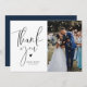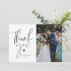 carte de remerciements mariage avec élégant script noir et un message de remerciement à vos invités. L'image peut être personnalisée.